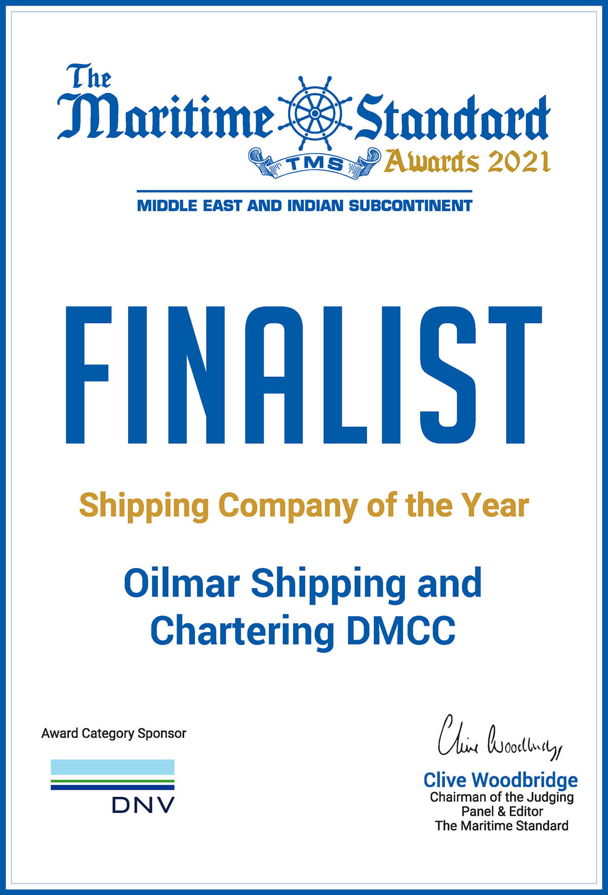 “Oilmar is elated to have received this recognition from The Maritime Standard for 2021”says our General Manager Mr. Iusif Mamedov.